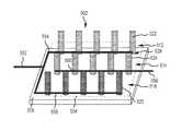 FIG. 32 shows twoarrays3202 and3204 ofcarbon nanotubes3212 and3214, respectively that are grown in horizontally stacked configurations on asubstrate3216.Carbon nanotubes3212 are shorter thancarbon nanotubes3214.Carbon nanotubes3212 and3214 are grown a direction shown by arrow3322.