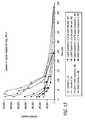 FIG. 17 illustrates the effectiveness of the present drug delivery system as measured for several active agents, including insulin, exendin, oxyntomodulin and PYY and exemplified herewith. Specifically,FIG. 17 demonstrates the relationship between drug exposure and bioeffect of the pulmonary drug delivery system compared to IV and SC administration of the aforementioned active agents. The data inFIG. 17 indicate that the present pulmonary drug delivery system provides a greater bioeffect with lesser amounts of drug exposure than intravenous or subcutaneous administration. Therefore, lesser amounts of drug exposure can be required to obtain a similar or greater effect of a desired drug when compared to standard therapies. Thus, in one embodiment, a method of delivering an active agent, including, peptides such as GLP-1, oxyntomodulin, PYY, for the treatment of disease, including diabetes, hyperglycemia and obesity which comprises administering to a subject in need of treatment an inhalable formulation comprising one or more active agents and a diketopiperazine whereby a therapeutic effect is seen with lower exposure to the active agent than required to achieve a similar effect with other modes of administration. In one embodiment, the active agents include peptides, proteins, lipokines.