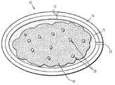 Referring now in specific detail to the Figures, in which like numbers identify similar or identical elements,FIG. 1 represents an embodiment of anosmotic pump10 of the disclosure. Ahousing12, sometimes referred to herein as pouch, may be formed, for example, from twolayers14 and16. The material forming thelayers14,16 may be the same or different, for example, outer layer14 may be an oxidized cellulose/polylactide coating formed oninner hydrogel layer16. Although only one outer layer14 is shown, outer layer14 may include many layers made from the same or different materials. In embodiments, the outer layer14 may be a molecular weight cut off membrane capable of preventing exit of certain sized molecules, such as larger bioactive agents, from thepouch12.Inner layer16 may be formed from, for example, a non-swelling hydrogel, including those disclosed in U.S. Patent Application Publication No. 2008/0220047, the entire disclosure of which is incorporated by reference herein. Thepouch12 may be preformed and introduced into a patient prior to filling. In embodiments, thepouch12 may be formed in situ.