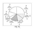 FIG. 7N is a diagram of a pie-chart of locations at which a user performs one or more activities and of percentages of activity levels at one or more locations over a period of time, in accordance with one embodiment described in the present disclosure.