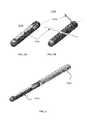 - tube—an elongate member having a longitudinal axis and defining a longitudinal cross-section resembling any closed shape such as, for example, a circle, a non-circle such as an oval (which generally can include a shape that is substantially in the form of an obround, ellipse, limacon, cardioid, cartesian oval, and/or Cassini oval, etc.), and/or a polygon such as a triangle, rectangle, square, hexagon, the shape of the letter “D”, the shape of the letter “P”, etc. Thus, a right circular cylinder is one form of a tube, an elliptic cylinder is another form of a tube having an elliptical longitudinal cross-section, and a generalized cylinder is yet another form of a tube.