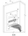 FIG. 9D a rear perspective view of the exemplary fiber optic splitter module partially coupled to the exemplary parking clip depicted inFIG. 9A wherein the ejector plate is slid in a downward direction to eject the array of fiber optic connectors from the connector organizer component;