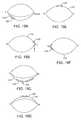 FIG. 2G shows an insert having a preformed oval shape extending along a convex spherical surface and in which the oval ring has a first portion corresponding to the upper conjunctival sac and a second portion corresponding to the lower conjunctival sac, in which the second portion corresponding to the lower conjunctival sac has a thinner cross section than the first portion corresponding to the upper conjunctival sac, such that the ring extends away from a plane and resists deflection toward the plane and places the second portion on the bulbar conjunctiva when the first portion is retained with the upper lid, in accordance with an embodiment;