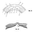 Now initially referring toFIG. 1A, a cross-sectional view of a normal, anterior abdominal wall of the ventral region of the body is shown. As shown, the abdominal wall includes left andright rectus muscles10 and12 enclosed and held in place by posterior layers offascia14 and anterior layers offascia16. These layers of fascia, which are thin, strong fibrous tissue, merge together in the region intermediate therectus muscles10 and12. Lateral to therectus muscles10 and12 are theexternal oblique11,internal oblique13, andtransverse muscle15. Athin layer18, called the peritoneum, covers the posterior side of theposterior fascia12. Theperitoneum18 is a soft, pliable layer of tissue material and provides an enclosure for the intestines and other internal viscera. Anterior to theperitoneum18 is thepreperitoneal fat19. A layer of skin composed of thesub dermis20 and dermis22 covers thesubcutaneous fat17 and exterior of theanterior fascia16.