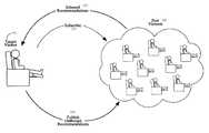 Community CollaborationIn unfamiliar groups and communities, there is typically a large variation in interest amongst the members. In hierarchical communities, there may be larger variation. Full featured service providers (e.g. AOL-like service) may provide the opportunity for a viewer or viewer set to subscribe to anonymous cross-group recommendation viewer set collections. In this scenario, unrelated groups or communities may pool their recommendations. These non-peer recommendations may be considered “supplementary”, “cross-group” or “world” recommendation sources. These unrelated cross-group viewer set combinations should have high variation in interest. For all these kinds of systems, conventional collaborative filtering algorithms may be appropriate. Indices about the interests of the viewers and viewer sets may be extracted, and then predictions about the interest of the member viewers and viewer sets can be generated. The members may be considered the individual viewers, or they may be the joined/hierarchical viewer sets or they may be some combination of these. The interest indices can be generated directly from the content preference filter descriptions if they are managed by the system. If these are not available, then the viewing UsageHistory for the members may be logged and examined to generate interest indices.