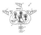 FIG. 5 is a simplified block diagram of an exemplary embodiment of theBS14 in accordance with the present disclosure. Operation of the BS may be controlled by acomputer processor51 executing computer program instructions stored on anon-transitory memory52. When a BSC-MTX/MSC interface53 receives a SOC control command from the MTX/MSC15 (or via a BSC), the processor determines whether the command is received in an SMS-B message to be broadcast to allRF control modules17, or is received in a P2P SMS message to be transmitted only to an identified RF control module (or several identified modules). When the SOC command is to be broadcast to all RF control modules, the processor forwards the command to an SMS-B message unit54, which broadcasts the command to all RF control modules. Upon broadcasting the SMS-B message, an SMS-B rounds counter increments a counter and notifies the processor of the current count. If the current count is less than the configured maximum number of rounds, the processor instructs the SMS-B message unit to broadcast the SMS-B message again. This process continues until the current count equals the configured maximum number of rounds, at which time the processor stops the broadcasting and sends a BS delivery response to the MTX/MSC15.