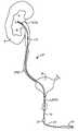 The sweeping structure in its tubular configuration, as shown inFIG. 3, has only a single wall and is thus relatively flexible, typically having a bending stiffness in the ranges set forth above. As thesweeping structure18 is everted, however, the wall becomes doubled, increasing the bending stiffness within the ranges set forth above. The relatively flexible tubular configuration is desirable since it will be over the steerabledistal region32 of the viewing scope. Thus, the viewing scope may be steered even while thesweeping structure18 is over it. When the sweeping structure is deployed, however, it will have more stiffness and rigidity to facilitate engaging and manipulating the urinary stones within the kidney or bladder. As the deployed sweeping structure is distal to the distal end of thesteerable shaft24, however, the structure will not interfere with steering and advancement.