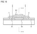 FIG. 15 is a longitudinal sectional view illustrating an inverted-staggered thin film transistor which uses an oxide semiconductor;