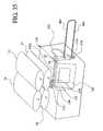 FIGS. 36 and 37 are perspective views of embodiments for coupling the solution bags to the renal failure therapy machine, which also show one embodiment for enabling the machine to receive the cassette of the present invention.