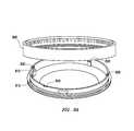 FIG. 98A illustrates an example of the operation of the interaction and transition model with respect to a function or amode9805 of a particular application of the device and the use or application of thefunction9810. As an example, if the application is a camera, the functions, modes, or other elements of the camera application may include picture mode, video mode (e.g. with a live view), and turning on or off a flash. The various functions, modes, or other elements may be accessed via transitions within a single layer of the model hierarchy. These intra-layer transitions may occur upon receiving or determining a particular type of transition event or input from an input source such as the user of the device (e.g. a rotation of the outer ring counterclockwise or clockwise), or upon determining a particular context of use of the device. In particular embodiments, a transition event input may also include, e.g., a touch or tap of the display, voice input, eye gazing, clicking or pressing of the outer ring, squeezing of the outer ring, any suitable gesture, internal muscular motion detected by sensors, or other sensor input. To select and use a function, mode, or other element of the application, the user may provide a particular type of selection event or input (e.g. a tap or touch of the display, a press or click of the outer ring, a particular gesture, or sensor input), causing an inter-layer transition within the GUI to a deeper layer of the hierarchy. As an example, to take a video, the user may tap a screen associated with the video mode feature of the camera application. Once in this deeper layer of the hierarchy, taking a video, the user may cause the GUI to transition between different options in that layer, if available (e.g. options related to video mode). In particular embodiments, the user may select one of the options in the deeper layer, causing the GUI to transition to an even deeper layer. As an example, once recording video in video mode, the user may again tap the display to transition the GUI to a deeper layer, which in this case may include the option to stop recording video. Additionally, the user may return to a higher layer of the hierarchy by providing a particular type of selection event or input (e.g. a “back” input, described herein). As an example, once recording video in video mode, the user may touch a particular “back” portion of the display, causing video recording to be canceled and causing the GUI to transition to the screen associated with the video mode feature of the camera application (e.g. in the features layer of the hierarchy). The interaction and transition model hierarchy of the GUI may have any number of layers and any number of elements (e.g. functions or content) within a single layer.FIG. 98B illustrates an example of the operation of the interaction and transition model with respect tocontent9815 on the device. In this example model, content may behave similarly to an application, except that if the user selects the content9815 (e.g. a photo) and the GUI transitions to a deeper layer in the hierarchy, thefirst option9820 in a menu of options related to the content may be shown (e.g. options such as deleting the photo or sharing the photo).FIG. 98C illustrates an example of the operation of the interaction and transition model with respect to acontrol9825 on the device. A control element may function like a knob, in that it may modify a value over a range of possible values. User input to the device (e.g. rotating the outer ring to the right or left) may modify the value orstate9830 associated with thecontrol element9825. The value modified by a control element may be substantially continuous in nature (e.g. the zoom level of a camera, or the volume level of a television) or may be substantially discrete in nature (e.g. the channel of a television). In particular embodiments, in cases where the value modified by a control is discrete in nature, a particular user input (e.g. pressing the outer ring) may “commit” the selection of the value.FIG. 98D illustrates an example of the operation of the interaction and transition model with respect to anapplication9835 on the device and amain function9840 of the application. As an example, each mode or function of the device (e.g. camera or augmented reality functions) may be an application on the device. Transitions within a single layer (e.g. performed upon receiving a particular user input such as a rotation of the outer ring) allow the user to change applications, modes, or functions of the device. Transitions between layers (e.g. performed upon receiving a particular user input such as a tap on the display) allow the user to enter deeper layers (or exit deeper layers) of the hierarchy associated with the selected application, mode, or function.