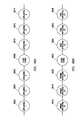 FIG. 93A illustrates an example of a user clicking (e.g. pressing down) on the outer ring, indicated byarrows9310.FIG. 93B illustrates an example of a user squeezing the outer ring, indicated byarrows9320.FIG. 94A illustrates an example of a user rotating the outer ring, such thatcontent9410 of a graphical user interface of the device changes in accordance with the rotation (e.g. to the right).FIG. 94B illustrates an example of a user performing a rotating gesture on a touch-sensitive ring, without the ring itself rotating, such thatcontent9420 of a graphical user interface of the device changes in accordance with the rotation (e.g. to the right).FIG. 94C illustrates an example of a user rotating the outer ring while simultaneously pressing or clicking the ring, such thatcontent9430 of a graphical user interface of the device changes in accordance with the rotation (e.g. to the right) and the pressing or clicking.