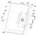Themodule circuit board202 is provided with anantenna post2021 protruding from a surface of themodule circuit board202 that is adjacent to themodule antenna2011, as shown inFIG. 4 andFIG. 5. Anantenna feeding point20211 is disposed on themodule antenna2011 at a location corresponding to theantenna post2021, and electrical connection between a side of theantenna post2021 facing towards themodule antenna2011 and thefeeding point20211 of themodule antenna2011 is achieved through an elastic contact structure in the form of a gold-plated probe. Furthermore, the elastic contact structure may also be an elastic piece, and the present disclosure has no limitation thereon.