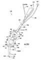 FIG. 21 is a fragmentary view of a triple lumen, active device similar to that active device shown inFIG. 19 and showing a balloon at the distal end.