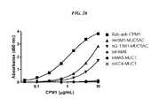 FIG. 25. Reactivity of several anti-mucin MAbs with a high molecular weight mucin containing fraction (CPM1) isolated from the Capan-1, human pancreatic adenocarcinoma. MAbs are identified by clone name with reactive species of mucin indicated by horizontal bars beneath MAb clone names. In addition to PAM4, substantial reactions were observed for anti-MUC1, MUC5ac, and CEACAM6 antibodies. All MAbs were employed at a constant 10 μg/mL.