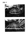 - (4) In a fourth display condition, the cameraimage correction section16 corrects the camera image as performed by the viewpoint transformation. The guideline calculation section13 calculates the guide line information to which the lens distortion and the distortion by the projection system are added and the projection plane transformation and the viewpoint transformation are applied. The viewpoint after performing the viewpoint transformation is the same as the case of the third display condition. The camera image performed by the viewpoint transformation to this viewpoint becomes an image in which the road surface behind the vehicle is seen from directly overhead, and a wide range surrounding the vehicle can be seen although the distortion is present. The image displayed in the fourth display condition is referred to as a different viewpoint wide-angle image. Furthermore, the image displayed in the third display condition or the fourth display condition is referred to as a different viewpoint image.