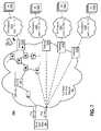 While the network clouds are illustrated as a central network through which all devices communicate, the network clouds may comprise a number of separate networks, where only certain devices communicate with one another through a first network, while other devices communicate through a different network not connected to the first network.