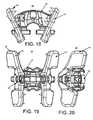 Referring toFIGS. 17-23, an example implementation of themedical device10 ofFIGS. 1-4 is illustrated with thebarrel16 shown in an expanded state and theplates12 and14 shown in an open or separated position and in an angulated configuration. As discussed above, theplates12 and14 may rotate angularly with respect to therails18 and20. Theplates12 and14 may pivot around thebushing22 and may be locked in place using theset screw24. In one example implementation, theplates12 and14 may have a range of motion of about 25 degrees offset with respect to therails18 and20. The angulation of theplates12 and14 enables each plate to conform independently to the anatomy of the particular patient. Eachplate12 and14 may be pivoted and locked at any position in their range of motion independent of the other plate.