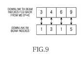 Referring to (B) ofFIG. 8, the indication information can be 1-bit information relating to whether all of the P candidate downlink Tx beams correspond to the single downlink optimal Rx beam.