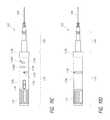 FIGS. 23A and 23B show schematics of the deployment mechanism at the end of the first stage of deployment of the shunt from the deployment device.FIG. 23C shows an enlarged view of the distal portion of the deployment device ofFIG. 23A. This figure shows an intraocular shunt partially deployed from within a hollow shaft of the deployment device.