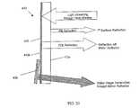 Visible light transflecting/polarizing element orfilm16 is attached to therear surface20bofrear substrate20, such as via anoptical coupling layer32, such as an optical adhesive, such as an acrylic or an acrylate or an epoxy or a urethane or the like. For example, the visible light transflecting/polarizing element orfilm16 may be attached to therear surface20bofrear substrate20 via an optical index matching adhesive, such as an optical epoxy or optical acrylic (such as by utilizing aspects of the reflective element described in U.S. patent application Ser. No. 10/993,302, filed Nov. 19, 2004, now U.S. Pat. No. 7,338,177, which is hereby incorporated herein by reference in its entirety). The visible light transflecting/polarizing element or film may comprise any suitable visible light transflecting/polarizing element or film, such as a polarizing reflective film commercially available from 3M of Minneapolis, Minn. under the brand name Vikuiti™, such as 3M Vikuiti™ Polarizing Reflective Film (BEF-RP or BEF-P) or the like. Such all-polymeric polarizing transflective films comprise hundreds of very thin alternating layers of polymer material of different refractive indexes. For example, the Vikuiti™ Dual Brightness Enhancement Films (DBEF) are a complex film consisting of over 800 polymer layers and are reflecting to visible light, are transmitting to visible light and are polarizing to visible light.