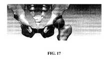 FIG. 17 is a frontal view of a human pelvis and proximal femur showing a common anatomical sphere center.