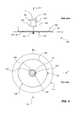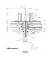 Similarly, the outer conductor296 of the mode-0feed network290 extending beyond its junction with themicrostrip line292 toward thecoaxial connector181 is a reactance, rather than a potential short circuit to theground plane210 since, from the perspective of the mode-0microstrip line feed290, the ground plane of the mode-0 microstrip line feed is293, and the conductingplane210 is spaced apart from the microstrip line. Nevertheless, a thincylindrical shell297 made of a low-loss dielectric material can be placed between conducting cylindrical shell296, which is the inner conductor of the mode-0 coaxial cable section offeed network290, and the extended sleeve of the conductingground plane210 to form a capacitive shielding between them. The thin cylindricaldielectric shell297 removes direct electric contact between the inner conductor296 of the feed cable section offeed network290 and the conductingground plane210 at the via hole, and is also thin and small enough to suppress any power leakage at frequencies offeed network290. A small length for the cylindricaldielectric shell297, as well as the sleeve for conductingground plane210 at the via hole, further improve the quality of electric shielding of thefeed network290 in this enclosed and shared region. The entire microstrip feed is preferably encased in solid conducting walls to improve the integrity of294, the microstrip section of thefeed network290. Finally, a choke can also be placed below297 to reduce any leakage at the via hole, if needed.