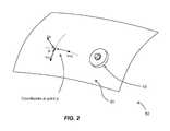Referring now toFIG. 2, depicted is a multifunction low-profile 3-Dmulti-mode TW antenna10 mounted on the generally curved surface of aplatform30; the antenna/platform assembly is collectively denoted as50 in recognition of the interaction between theantenna10 and its mountingplatform30, especially when the dimensions of the antenna are small in wavelength. The antenna is conformally mounted on the surface of a platform, which is generally curvilinear, as depicted by the orthogonal coordinates, and their respective tangential vectors, at a point p. As a practical matter, the antenna is often placed on a relatively flat area on the platform, and does not have to perfectly conform to the platform surface since the TW antenna has its own conducting ground surface. The conducting ground surface is generally chosen to be part of a canonical shape, such as a planar, cylindrical, spherical, or conical shape that is easy and inexpensive to fabricate.