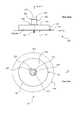 While the mode-0 2-D TW radiator125 takes the form of a planar multi-arm self-complementary Archimedean spiral in one embodiment as discussed, it is in general an array of slots which generate omnidirectional radiation patterns, having substantially constant resistance and minimal reactance over an ultra-wide bandwidth, typically up to 10:1 or more in octaval bandwidths. (A planar multi-arm self-complementary spiral, Archimedean or equiangular, is one embodiment of an array of concentric annular slots.) The radiation at the mode-0TW radiator125 in mode-0 TW is from the concentric arrays of slots, which are equivalent to concentric arrays of annular slots, magnetic loops, or vertical electric monopoles. The radiation takes place at a circular radiation zone about a normal axis unat the center of the mode-0 2-D TW radiator125, as well as at the edge of theradiator125.