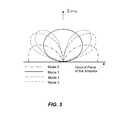 In Eq. (2) a standard cylindrical coordinate system (ρ,φ, z) is employed and the scalar waves are expanded in exp(jnφ) and Bessel functions Jnand an arbitrary function g(kρ) in k-space. The mode-n wave corresponds to the case of n=0, 1, 2, . . . in Eq. (2). The radiation patterns of the basic and useful modes of the TW antenna aremode 0, 1, 2, and 3, as depicted inFIG. 3. This unique multimode feature of this TW antenna is herein exploited to achieve multifunction performance on a single aperture.
