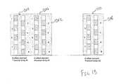 Referring now toFIGS. 13,14 and15, where details for some embodiments are illustrated.FIG. 13 illustrates an antenna configuration including a fixedportion1302 which includes an 8 offset element transmitarray1304 and an 8 element offsetreceiver array1306.FIG. 13 further illustrates amovable portion1308 which includes an 8 offset element transmitarray1310.