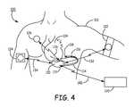 Themedical device system100 includes at least onetissue perfusion monitor122,124 or126 and may additionally or alternatively include a LD unit (not shown inFIG. 4) enclosed withinICD housing112.Monitors122 and124 are illustrated as external monitors worn by the patient as awearable cuff monitor122 or awearable patch monitor124.Monitor126 is illustrated as an implantable tissue perfusion monitor that may be implanted at any desired body location for monitoring tissue perfusion. WhileFIG. 4 shows three tissue perfusion monitors122,124 and126 to illustrate various monitor configurations and locations, it is recognized that only one monitor may be used withICD110 or multiple monitors may be used withICD110 for cooperatively detecting an unstable or deteriorating hemodynamic condition ofpatient102.