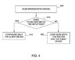 In atypical network102, an instance of thenetwork configuration component206 may be executed on each of the client devices130(1)-(N) to configure them to connect to therouter120. However, as mentioned previously, thenetwork configuration component206 may not need to reconfigure or provide any settings to therouter120 since that was performed instep305. Accordingly, thenetwork configuration device206 may prompt a user to determine if she will be configuringother client devices130 to connect to therouter120. If the user responds in the affirmative, atstep315 thenetwork configuration component206 configures therouter120 to accept incoming connections on its setup VAP. That is, thenetwork configuration component206 may transmit either a wired or wireless command that causes therouter120 to change the setup VAP from the closed state (e.g., the default state when therouter120 powers on) to the open state. For example, thenetwork configuration component206 may send the command to therouter120 using the standard VAP that was configured insteps305 and310.