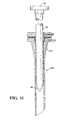 The trocar needles16 are illustrated in detail inFIG. 8. The two suture needles are substantially identical. They each have ahandle66 at the proximal end and a cylindricalstraight needle68 having its proximal end within thehandle66 bearing against acompression spring70. The compression spring biases theneedle cylinder68 toward an extended position from the handle. The lower end of theneedle68 has ablunt end72 and aside slot74 adapted to capture a suture. The outer side of the tubularinner member68 is surrounded by atubular sheath76 which has its proximal end fixed with respect to thehandle66 in such a manner that it is not subjected to the biasing action of thespring70. The distal end of thesheath76 terminates in a sharpenedcutting edge78.