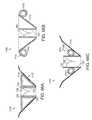 FIGS. 12A-12C are side views of various longitudinal ribs flexing in response to a distorting force in accordance with further embodiments of the present technology.