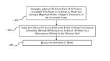 Computing system130 may generate each perturbed model by for example applying a vector field (e.g., part of data155) to the initial model (e.g., by vector addition). The applied vector field typically causes the nodes of the initial model to move to corresponding new locations in the perturbed models. The vector fields are preferably substantially continuous. A plurality of such vector fields may be individually applied to the initial model, thereby generating a plurality of different models, each of which has substantially the same probability of occurrence.