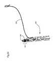 A number of technical effects accrue from these modifications. The additional radiopaque markers provide the clinician with information about the location in the patient of the proximal and distal extremities of theendovascular prosthesis500. Inendovascular prosthesis400, the radioopaque markers were disposed along the same side of the spine portion of the prosthesis. In contrast, inendovascular prosthesis500, the radioopaque markers alternate along the spine portion and the most proximal radioopaque marker is centred with the spine. Pair ofarms519 inendovascular prosthesis500 serve to urge the spine and rib portions toward the aneurysmal opening and provide support to the spine and rib portions to urge them against the artery wall. Furthermore, pair ofarms519 replace the function ofsecond arm442 of the delivery device used inendovascular prosthesis400.