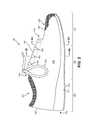 FIG. 19 is a schematic view of internal components of the knitting machine in operation to manufacture a knitted component with an integral knit tongue;