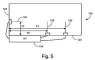 As detailed below, initial selection or subsequent adjustment of one or more antenna configuration parameters may be used to enhance communication of the wireless broadband signal from the transmitter to a receiving device. Initially, it may be noted fromFIGS. 3-5 that a givenbase antenna106 may be located at a select distance X0from avertical duct wall126 or a select distance Y0from ahorizontal duct wall128. In addition the distance between selectedbase antennas106 may be varied in any direction. Furthermore, the angular orientation a of one ormore base antennas106 may be varied with respect to the angular orientation of other antennas or the duct walls. Although illustrated with respect to a representative duct having a rectangular cross-section, the foregoing general concepts are equally applicable to ducts having a circular cross-section.
