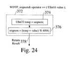 FIG. 24 andFIG. 25 show an implementation ofoperator methods372,380 for wireless datagram transaction protocol (WDTP) sequence numbers. An algorithm for the implementation of the operator methods for WDTP_seqnum is shown in Table 17.
