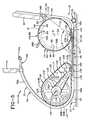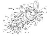 Referring toFIGS. 7-12, arcuate left andright arms234A and234B of the frame include respective left and rightrear segments274A and274B which extend respectively axially outwardly, upwardly and forward from the respective member235 ofsupport232, respectiveintermediate segments276A and276B which extend respectively forward fromrear segments274A and274B, andfront segments278A and278B which extend respectively downwardly from the front ofintermediate segments276A and276B.Front segments278A and278B adjacent their lower ends extend axially inwardly toward theirrigid connections243 withsegments245 andframe member233. More particularly, left and rightrear segments274A and274B extend axially outwardly fromupright232 and curve forward and slightly upwardly therefrom to transition respectively into left and rightintermediate segments276A and276B, which curve forward, downwardly and inwardly to transition into left and rightfront segments278A and278B. As viewed from above (FIG. 11),rear segments274A and274B curve so that theirinner surfaces285 curve concavely and face generally forward and axially inward toward one another and plane P1 while theirouter surfaces287 curve convexly and face generally rearwardly and axially outward away from one another and plane P1. As viewed from above (FIG. 11) or from the side (FIGS. 7-8) intermediate segments276 curve so that theirinner surfaces288 curve concavely and face generally axially inward toward one another and plane P1 while theirouter surfaces290 curve convexly and face generally axially outward away from one another and plane P1. As viewed from the side, the bottom downwardly facingsurfaces289 of rear segments274 and intermediate segments276 curve concavely, while their top upwardly facingsurfaces291 curve convexly. As viewed from the side, the rearwardly facing back surfaces293 offront segments278A and278B curve concavely while their frontforward facing surfaces295 curve convexly. The lower ends offront segments278A and278B curve rearwardly to theirrespective connections243 withsegments245 andframe member233. As viewed from behind (FIG. 9) or from above (FIG. 11), left andright arms234A and234B together form a substantially heart-shaped configuration.