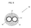 Theinner supply line62 and returnline63 are maintained in the center of theouter sheath61 by openconfiguration insulative spacers53 placed throughout thecatheter65. Thespacers53 can be in the form of individual units, tube extrusions, or other means of positioning the tubing. The open configuration allows for acatheter lumen64 to be filled with gas. Theouter catheter sheath61 is sealed to theconnector66 to create thegaseous lumen64. Thetip68, in combination with theinner supply line62 and thereturn line63 come into contact with theouter sheath61 at the distal end to develop a freezing region. Additionally, the open configuration can also allow for a vacuum to be drawn upon thecatheter lumen64.