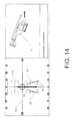FIG. 13 is a combined graphical and perspective view, showing a helicopter ascending from the ground and gaining forward momentum, and the corresponding flight instrument display.
