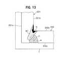 In the tab member disposing process, as shown inFIG. 11B, atab member203 is located on one peripheral side of the butting portion J1 of themetal members201,202 so as to come into contact with theside surface201dof themetal member201 and with theside surface202dof themetal member202. Thefront surface203aof thetab member203, theside surface202cof themetal member202 and theend surface201aof themetal member201 are arranged flush with one another.