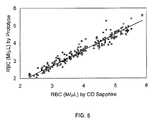 FIG. 5 is a plot illustrating the correlation between the CELL-DYN® Sapphire™ hematology analyzer and a hematology analyzer using the method described herein for red blood cells (RBC). The symbol M in the concentration scale represents 1×106.