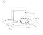 It is preferred that thedetection device8 differentiates between a touch signal generated by a finger of anuser10 or by an information carrier1 (FIG. 24). This differentiation reduces mistakes in usage or interaction. The different touch signals can be displayed by thetouch screen9 in different colours or forms.