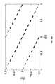 FIGS. 5A-E show examples according to an embodiment of the present invention the space (do,dw) can be broken into polygons in which the conditional likelihoods pk(I|o,w) are constant. Plot (5A) shows this partition for symbol ‘2’, for which {ri2} is {2,1,2,2}. Each one of the four bars in a symbol defines a set of parallel lines in the space (do, dw); for example, when the values of (do, dw) in plot (5B) cross one of the dashed lines, the right boundary of the first bar crosses a pixel and, therefore, the likelihood changes. Plots (5C)-(5D) show by dashed lines the sets of parallel lines corresponding to bars 2-4. The equations for these lines are easily computed; for the third bar (plot (5D)), for instance, we can write: