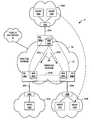 This form of interconnection is referred to as “full mesh” in that a VPLS provides logical point-to-point connectivity between each of a set of CEs18 and associated customer networks14. The full mesh form of interconnection is illustrated inFIG. 1 as threebi-directional service links22A-22C (“service links22”) that transport customer L2 packet data units (PDUs) between PEs16. Service links22 are illustrated inFIG. 1 as dashed lines to reflect that these may not directly couple PEs16 to one another with a single physical link, but may transport PDUs over one or more physical links and intermediate network devices that form each of service links22. While assumed for ease of illustration purposes to be configured in this full mesh manner, CEs18 may interconnect with one another via any other form of interconnection, and service links22 may be bi-directional or unidirectional to suit any particular form of interconnection. Each of service links22 may be implemented as a pseudowire. Pseudowire service emulation is described in additional detail in “Pseudo Wire Emulation Edge-to-Edge (PWE3) Architecture,” Request for Comments: 3985, Network Working Group (Bryant and Pate, ed.), March, 2005, which is hereby incorporated by reference as if fully set forth herein.
