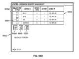 FIG. 156 depicts a preferred embodiment of a data record in the Action Registration Table. While a user interface such asFIG. 155B can be used to define action management processing between users and/or devices, only the actions that are registered at the device can be monitored. The monitored device (or user) must register actions which can be monitored, so not only does the “Share Delivery Experiences” or “Intercept Delivery Experiences” have to be granted by the monitored device(s) (or user(s)), the actions must also be registered for the device. In the preferred embodiment (FIG. 158 processing), the device itself is used to register eligible actions for being monitored by other devices. In another embodiment,records15600 can be maintained for a device without the knowledge of the user of a monitored device. Regardless or howrecords15600 are created, they provide means for monitoring actions at a monitored device.Records15600 are created for the devices which are to be monitored and can be used by the target device for the “My Actions” preference. The “My Actions” preference indicates to use the target device's actions for determining which actions to monitor of the monitored device.REGISTRANT_ID field15602 contains aPersonID field2902/3002 orRegistryID field6502 according to theREGISTRANT_TYPE field15604 which is a “U” for a user (i.e. all the user's devices), or a “D” for a device.ACTION_ID field15606 contains anACTION_ID field15702 value. Arecord15700 with anACTION_ID field15702 must exist before it can be inserted as a valid value tofield15606.ACTION_CONTEXT_INFO field15608 contains device context information for the circumstances under which the action registered is to be performed.ACTION_CONTEXT_INFO field15608 can contain a situational location, system constraint(s), user specified constraint(s), or any criteria for the environment or state under which the action is performed.DATETIME_STAMP field15610 contains a date/time stamp of when the action was registered.