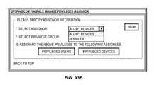 Thereafter, block14438 initializes in-process configurations variable(s) to Assignor(s) set atblock14436 or14434 (user, group, or device). If a device was specified atblock14418, then the Assignor(s) can be plural and includes that device as well as any devices and users which have granted the device the “Affinity Delegate” privilege. If a user was specified atblock14418, then the Assignor(s) can be plural and includes the user (equivalent to all user's devices) and each of the user's devices, as well as any devices and users which have granted the user or any of his devices the “Affinity Delegate” privilege. If a group was specified at block14408, then the Assignor(s) can be plural and includes the group name (equivalent to all user member devices), each user of the group (equivalent to all the particular user's devices), and each of the group member user's devices. The Assignor(s) in any case includes the group name string entered atblock14418 and the id (PersonID, RegistryID, or GroupID) of the associated record inserver data2104 along with each user LogonName and/or device name string as described above associated with its record id. In an alternate embodiment, block14436 can use the “Affinity Delegate” privilege in a similar manner to block14434 for discovering additional Configurator Assignor(s) which have granted the “Affinity Delegate” privilege to members of the group. The Assignor(s) are used to automatically populatedropdowns14968,15568-aand15568-bofFIGS. 149,156A and156B. Assignor(s) determined through having granted the “Affinity Delegate” privilege are preferably distinguishable, such as in the form discussed withFIG. 92 above (i.e. “JB345:johnsPDA” and “JB345:ALL DEVICES”).