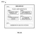 Subscriptions to useweb service2102 functionality by any subset of user types discussed. The preferred embodiment makesweb service2102 free to all users except content providers in a publicly accessed advertising related application, and enforces user based subscriptions in certain special applications.